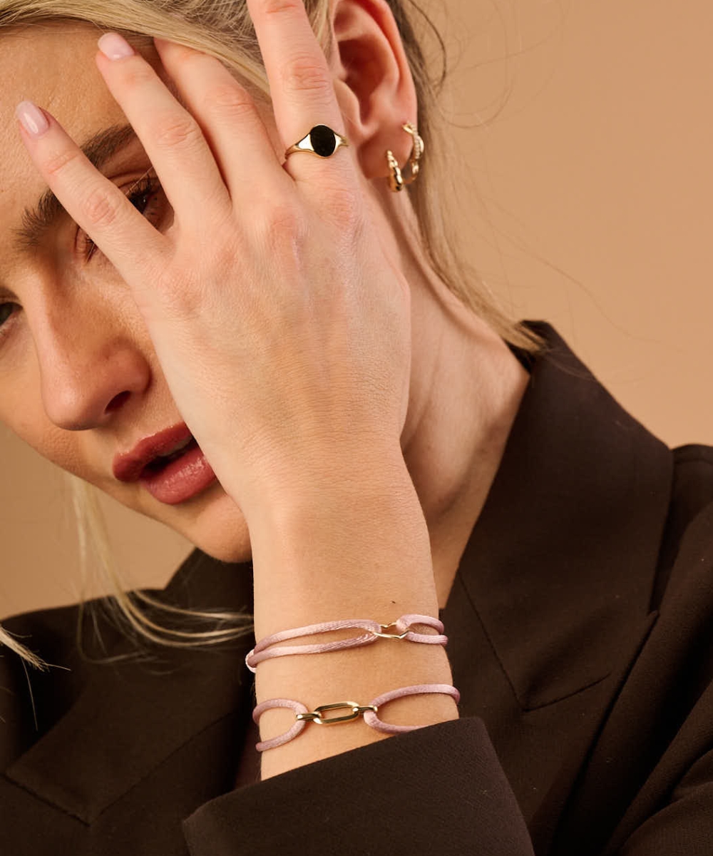 Onze armbanden zijn verfijnd en licht om te dragen van fijne schakels tot de elegante paperclip-stijl. Draag één enkel detail of combineer verschillende texturen tot een persoonlijk geheel.