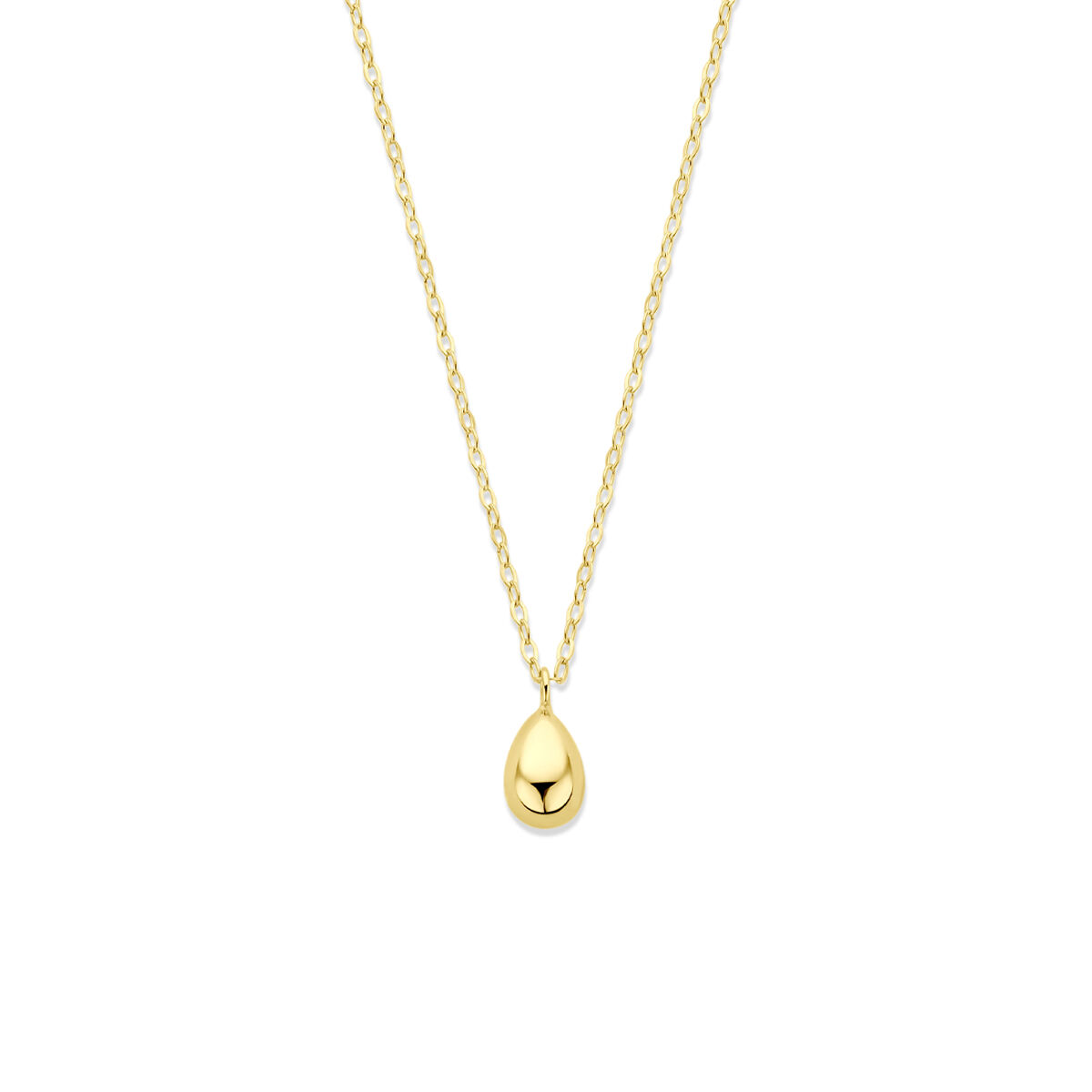 9k Geel kleurige collier uitgevoerd met een druppel. Het collier heeft draaglengtes van 42-45cm.