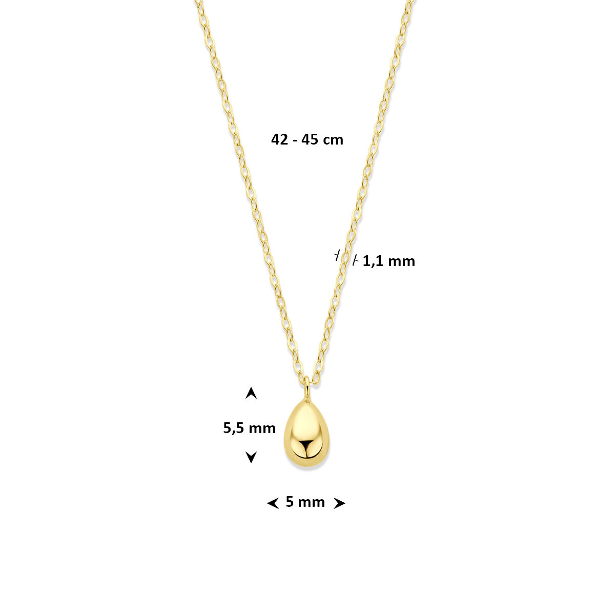 9k collier druppel 42 - 45 cm