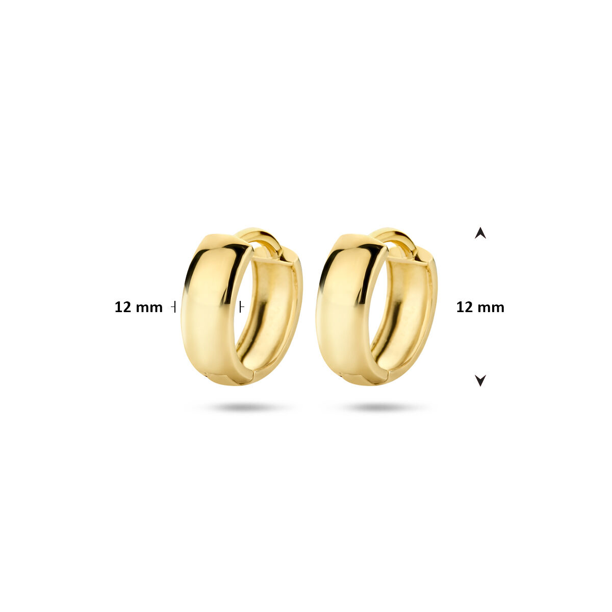 9k Geelkeurige klapoorringen met een afmeting van 12x3.2mm.