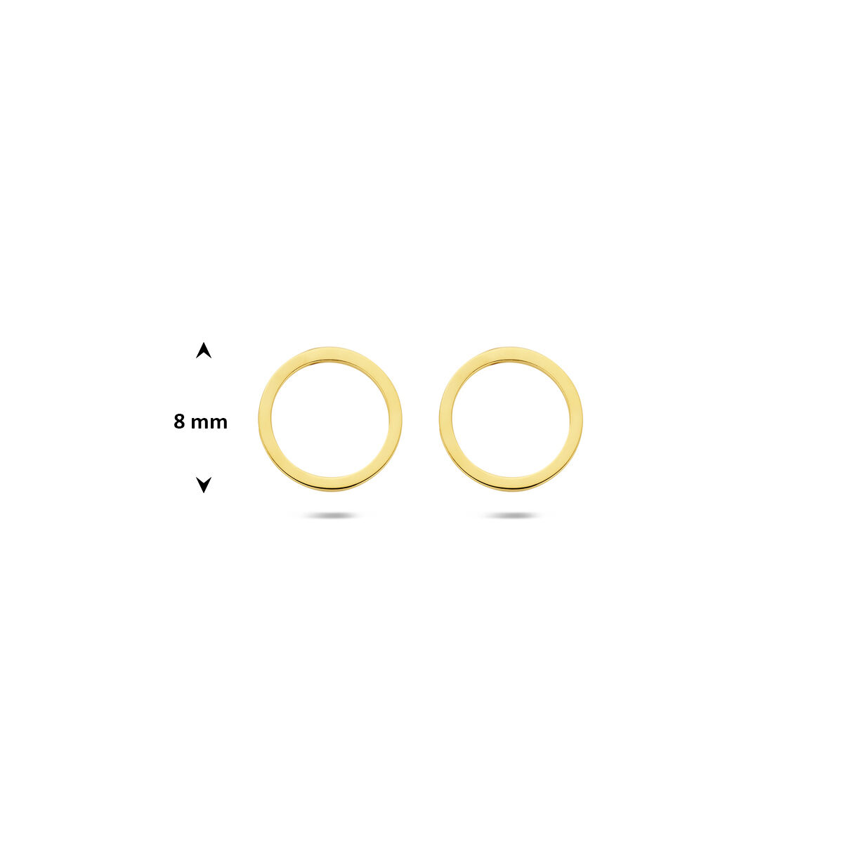 9k Geelkleurige oorknoppen met een open cirkel. De oorknoppen hebben een diameter van 8mm.