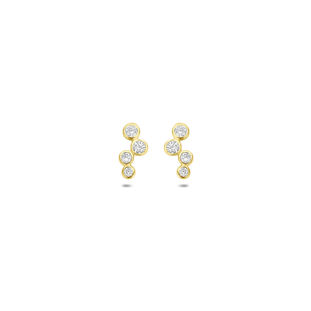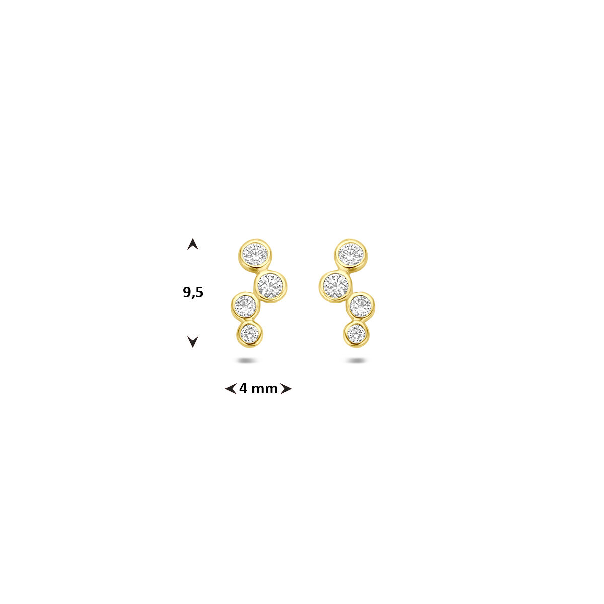 14k Geelgouden oorknoppen uitgevoerd met zirkonia. De oorknoppen hebben een afmeting van 9,5x4mm.